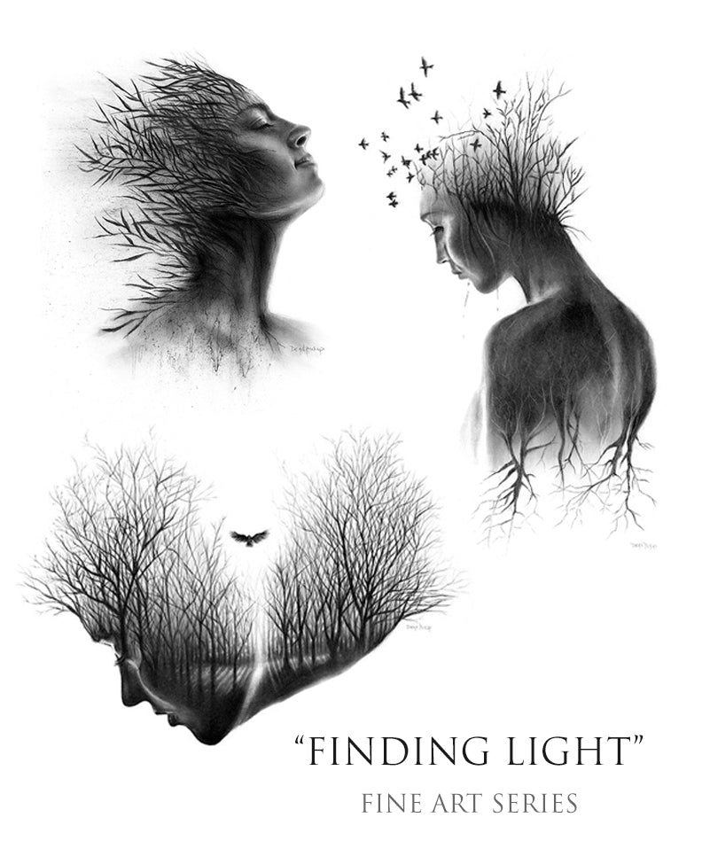 The entire "Finding Light" fine art print series by Dean Pickup. Package includes all three prints in the series: "Finding Light", "Grounded" and "Awaken".